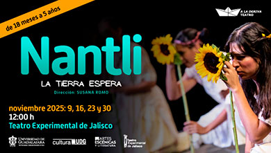 La experiencia de Nantli se divide en dos momentos: el primero es contemplativo, los niños, niñas y sus familias, participan activamente de la música en vivo, los juegos y la historia presentada por tres jugadoras y un músico en el escenario. La segunda parte que es participativa, se vuelve una fiesta de acercamiento con la tierra y las semillas, los niños y niñas podrán explorar, sentir, oler y jugar con todos los ritmos que nos provoca el regalo de sembrar.