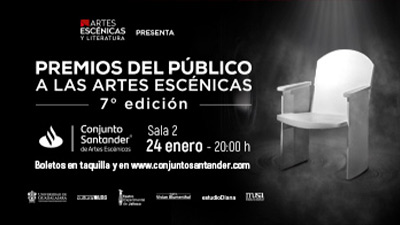 El público asistente reconoce el talento de quienes presentan su trabajo en el Teatro Experimental, el teatro Vivian Blumenthal, el Estudio Diana y el Conjunto Santander de Artes Escénicas. Este galardón distingue a proyectos Nuevas Voces y profesionales en categorías como actuación, dirección, diseño y creación escénica.